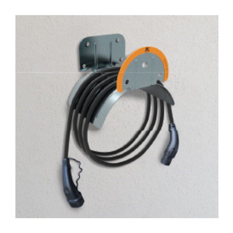 in robusto acciaio zincato di spessore 1,5 mm, con rivestimento gommato frontale da 153 mm a protezione del tubo. Tiene in ordine non solo il tubo di irrigazione, ma anche il cavo elettrico per la ricarica dellauto. Dimensioni 245x190 mm.