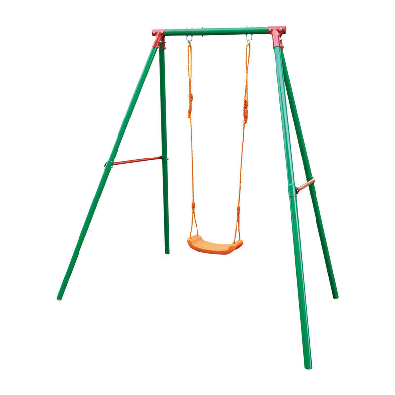in acciaio verniciato. Barra orizzontale d 50,8 mm - spessore 2 mm. Gambe d 45 mm - spessore 1,5 mm. Adatta per bambini di eta 3-10 anni. Completa di seduta semplice. Ingombro 145x156xh196 cm. Peso 20 kg.