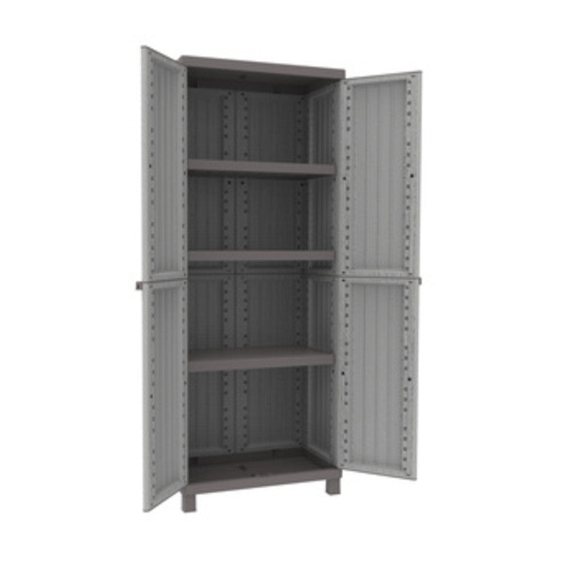 multifunzionale Serie C-WOOD Art. TP2680 in polipropilene. Finitura effetto LEGNO. Ottima resistenza agli agenti atmosferici. Doppia anta con apertura a 180. 3 ripiani interni regolabili in altezza. Dotato di piedini. Portata ripiano max 20 kg (uniformemente distribuiti). Possibilit di chiusura con lucchetto (non incluso). Dimensioni 68x39xh170 cm. Peso prodotto 13,251 kg. Dimensioni imballo 80x41xh42,5 cm. Peso imballo 14,921 kg.