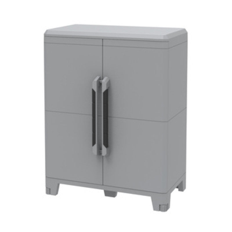 multifunzione Art. MODULAR 2 in resina antiurto. Anti UV. Cerniere antivento in metallo. Fondo rinforzato con 6 piedi di cui 2 frontali regolabili in altezza. Moduli interconnessi e sovrapposti. Ideali per esterni IP43. Resistente alle temperature -5/+40C. Doppia anta a battente con un ripiano interno modulare. Maniglia in materiale bicomponenete. Portata piano base max 80 kg, ripiano max 40 kg (uniformemente distribuiti). Dimensioni 78x43,6xh101,6 cm. Dimensioni imballo 88x45xh31 cm.
