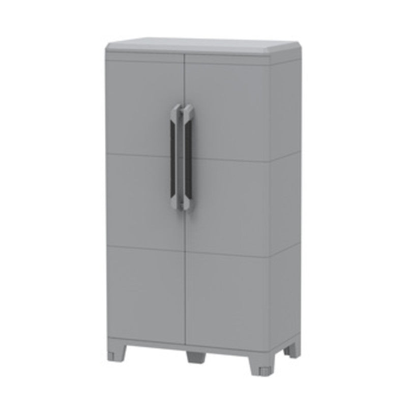 multifunzione Art. MODULAR 3 in resina antiurto. Anti UV. Cerniere antivento in metallo. Fondo rinforzato con 6 piedi di cui 2 frontali regolabili in altezza. Moduli interconnessi e sovrapposti. Ideali per esterni IP43. Resistente alle temperature -5/+40C. Doppia anta a battente con due ripiani interni modulari. Maniglia in materiale bicomponenete. Portata piano base max 80 kg, ripiano max 40 kg (uniformemente distribuiti). Dimensioni 78x43,6xh143 cm. Dimensioni imballo 92x41xh45 cm.