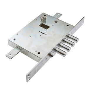 Art. 7111-2 DE chiusura triplice da applicare, con scrocco e 4 catenacci. Scatola mm 152x206 Entrata 70 mm Art. 7111-2 DE mano Dx Confezione in busta blocchetto non sigillato e corredato di tre chiavi.