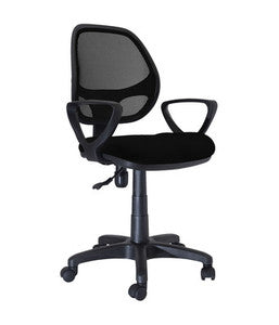 Poltrona Mod. New Manager con seduta in tessuto. Schienale antisudore ed ergonomico. Struttura con braccioli e base in polipropilene a cinque ruote piroettanti. Pistone con elevazione a gas permette la regolazione dellaltezza della seduta soddisfacendo qualsiasi tipo di esigenza. Da montare. Colore nero.