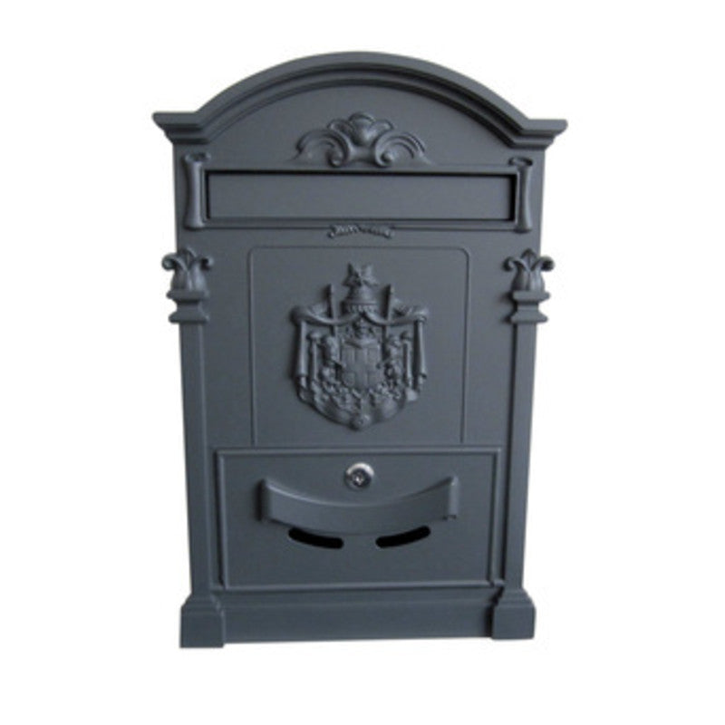 Mod. REGIA POSTA MAGNUM in alluminio pressofuso verniciato. Serratura a cilindro. Con 2 chiavi. Dimensioni mm 300x82x465h Finitura grigio ghisa