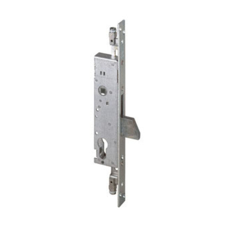 Art. 46800.30.0 CP e inferriate. Scatola in acciaio zincato e frontale in acciaio inox. Con contropiastra. Fornita senza cilindro. Le aste, grazie alla loro escursione di 25 mm, entrano pi in profondit nel telaio. Blocco aste sullo scrocco in caso di tentativo di effrazione. Quadro maniglia 8 mm. Frontale 25 mm. Entrata 30 mm. Interasse 85 mm. Ambidestra. Catenaccio nichelato. Borchia interna in acciaio. Predisposizione per chiusure supplementari con boccole filettate M8. Peso 0,610 kg.