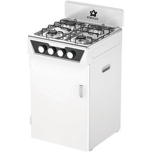 Fornello a gas 4 fuochi M-POKER - B Staylux in metallo con vano porta bombola. Per uso interno ed esterno. Dimensioni 48,5x45,0xh65,0 cm. Colore bianco