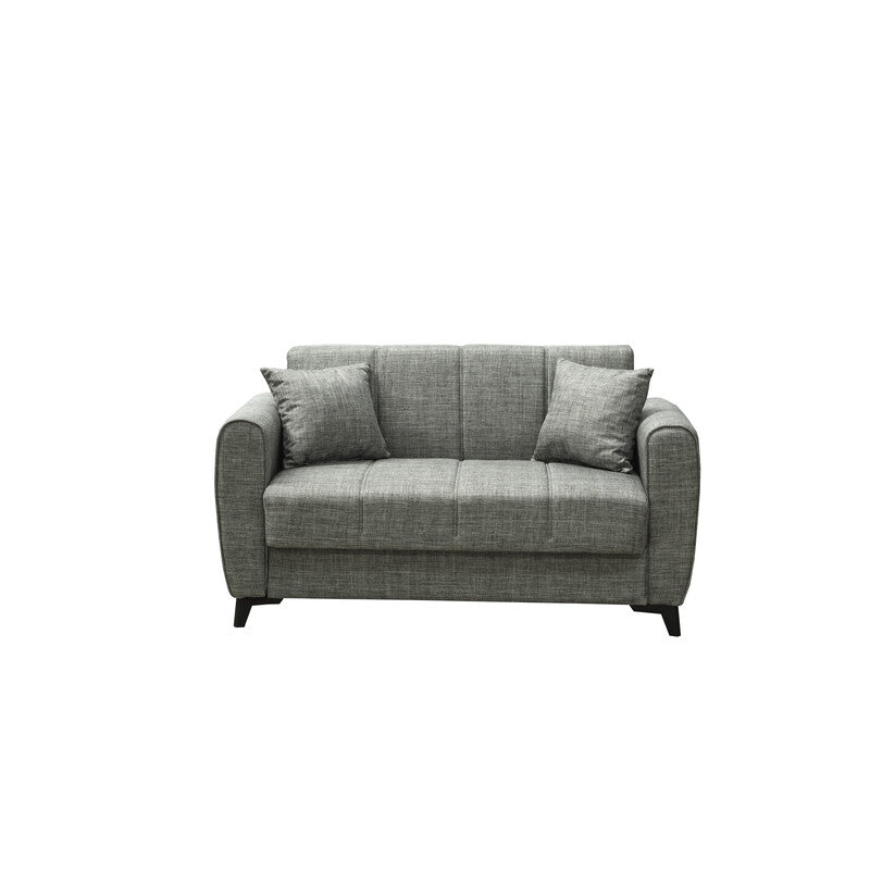 divano 2 posti funzione clic clac Delhi, seduta con molle bonnel, tessuto mina 14 grigio chiaro,- piedi in plastica neri dimensioni divano cm 149x78x78