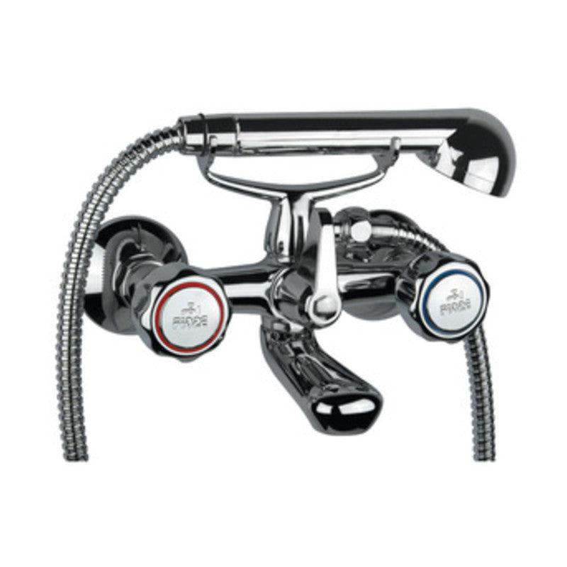 Serie ASTRO in ottone cromato. Esterno, con doccia su forcella doppia. Deviatore. Attacco