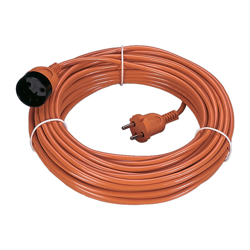 Art. 92.833 lineare da giardino. Lunghezza cavo 20 m. Sezione filo 2x1,5 mm2 H05VV-F. Spina schuko 2P - 16A. Presa schuko/bipasso 2P - 16A. in confezione termoretraibile