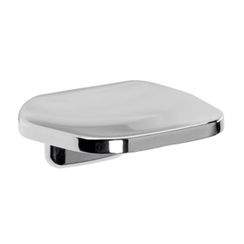 in alluminio anodizzato e cromall, piattino in vetro satinato. Art. KD12 portasapone. Dimensioni 11,7 x 8,7 x h 4,6 cm.