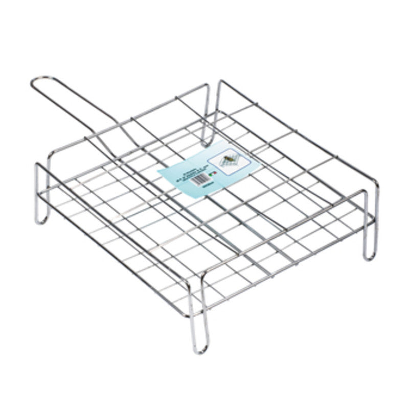Graticola speciale in acciaio cromato per cuocere le verdure (carciofi, peperoni, patate, pomodori, ecc.) alla griglia. La griglia a manico singolo e piedi di appoggio su un lato dotata di una struttura molto stabile e resistente. 16 spazi per carciofi. Dimensioni 30 x 30 cm