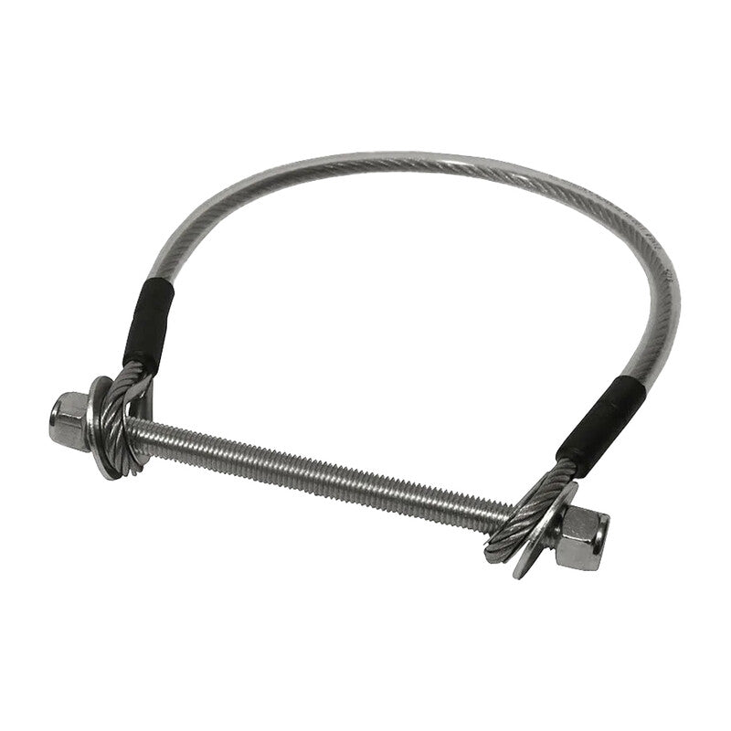composto da fune in acciaio zincato d 6 mm, lunghezza 600 mm. Tirante in acciaio zincato M12, lunghezza 150 mm. Carico di rottura per due dispositivi 920 kg