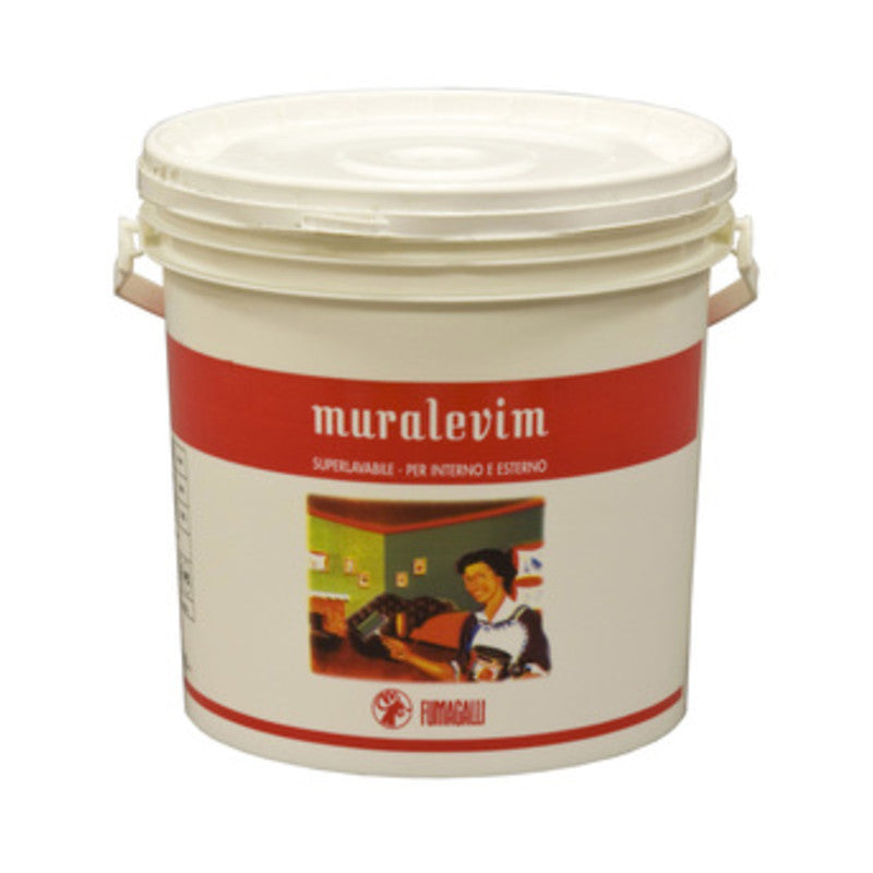 MURALEVIM traspirante per interni ed esterni. A base di copolimeri viniliversatici in dispersione acquosa, caratterizzata da elevata copertura e ottima scorrevolezza nellapplicazione. Dotata di buon potere traspirante e idrorepellenza, indicata per locali soggetti ad elevata quantit di vapore acqueo (bagni, cucine). Applicazione pennello, rullo, spruzzo. Diluizione con acqua (dal 15 al 30 in funzione dellassorbimento del supporto e del metodo applicativo). Essiccazione completa 24 ore. Sovrapplicabile 4-8 ore. Resa teorica (per due mani a seconda della diluizione) 6-8 m/l. Colore bianco. Fusto 5 l.