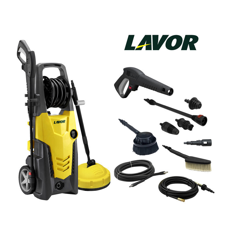 ad acqua fredda, Potenza 2500 W Pressione max 170 bar Portata 510 l/h Serbatoio detergente e avvolgitubo integrati. Per lavaggio di autoveicoli, macchine da giardino, pavimenti e muri esterni. Idonea per la pulizia profonda di sporco superficiale di medie/piccole superfici. Funzione Total Stop Dotazione standard Pistola con attacco rapido Tubo alta pressione da 8 m (su avvolgitubo) Lancia portatestine Testina a getto fisso Testina turbo Ugello diffusore detergente Spazzola fissa Spazzola rotante Patio per la pulizia dei pavimenti Sonda spurgatubi 6 m Adattatore. Peso 12,5 kg