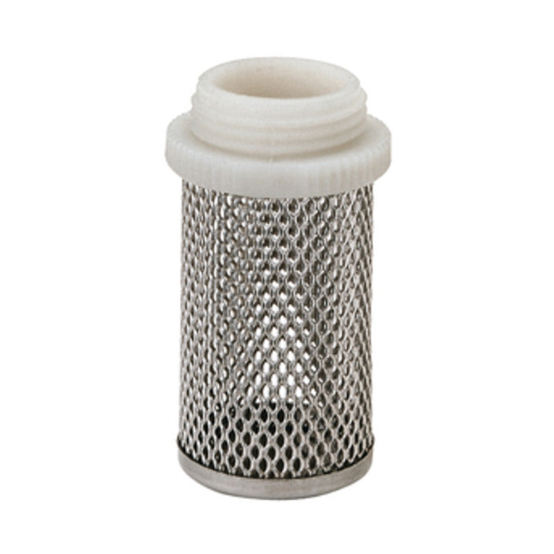 Art. 102 rete in acciaio inox Aisi 304. Grado di filtrazione 1200 m. Parte filettata in polimero. Dimensioni 43,5x69 mm. Diametro 1.