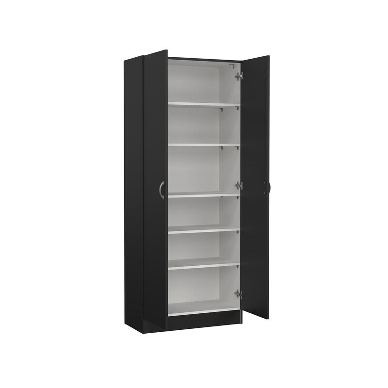 Armadio/scarppera mulituso a 2 ante e 5 ripiani regolabili. Dimensioni 69,2x34,6x170,4 cm. Colore nero. Peso 37,3 kg.