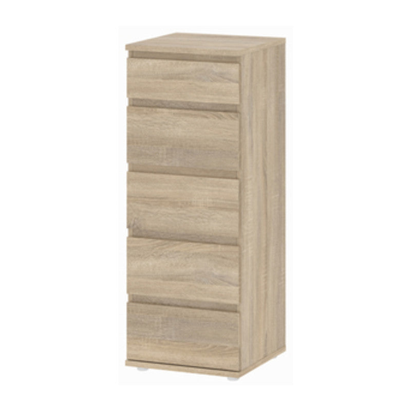 Modello slim. A cinque cassetti. Puo essere posizionata in soggiorno, camera da letto o nella cameretta per bambini. Versatile e comoda puo riporre facilmente vestiti, asciugamani, lenzuola e libri. Facile da montare e da pulire. Dimensioni cm 40x40x107h
