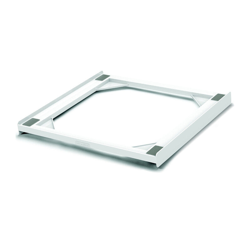 in tecnopolimero per sovrapporre lavatrice e asciugatrice. Portata max 250 kg. Compatibile con tutte le lavatrici con carica frontale profonde minimo 45 cm, e asciugatrici con carica frontale profonde anche oltre 60 cm (la distanza tra i piedini  dellasciugatrice dovr essere max 54 cm). La struttura in tecnopolimero rinforzato ultraresistente, garantisce la stabilit degli elettrodomestici, cinghia di sicurezza di 6 metri con fibbia in metallo inclusa, passaggio della cinghia esterno, kit di sovrapposizione senza asole.brDimensioni 60 x 55 x h 5,5 cm.