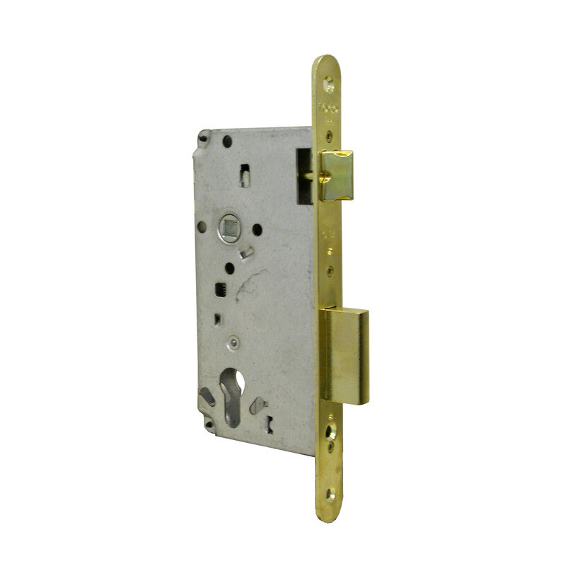 Art. 5C631 da infilare catenaccio a 2 mandate e scrocco. Bordo tondo. Frontale e contropiastra ottonati. Entrata 70 mm
