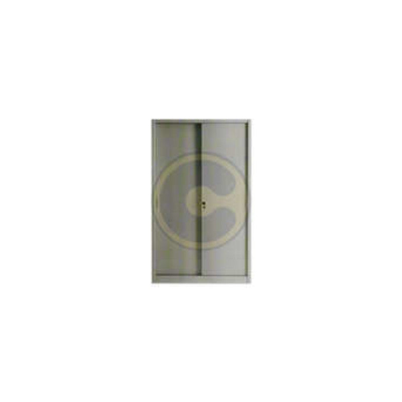 Art. ARS18 in lamiera di prima scelta. Armadio ante scorrevoli con maniglie in ABS nero incassate. Divisorio verticale. Serratura a pulsante su anta destra con chiavi. Ripiani regolabili in altezza mediante ganci zincati. Verniciatura a forno con polveri epossidiche. Dimensioni 180x45xh200 cm. Colore grigio. Peso 120 kg.