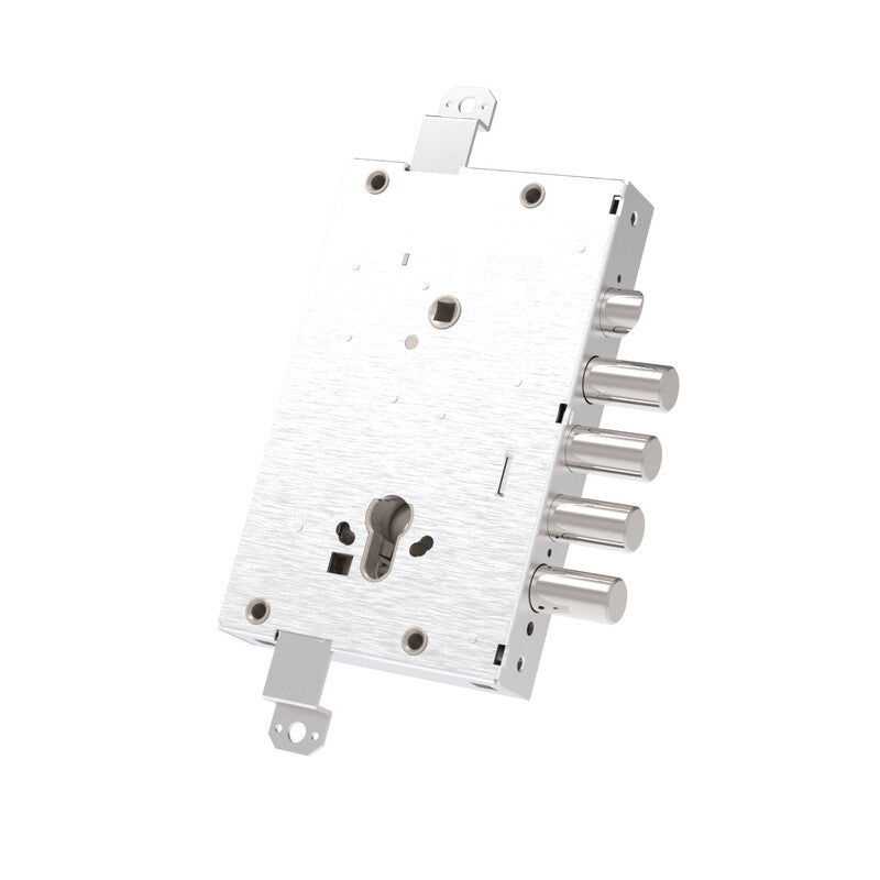 MOTTURA 82515 W800Q. SERRATURA PER PORTE BLINDATE CILINDRO EUROPEO AD INGRANAGGI.Triplice chiusura. Ad applicare.Entrata 64 mm.Interasse 85 mm.Mano REVERSIBILE.Sistema con BLOCCO ANTI INTRUSIONE. 4 catenacci.Altezza (mm) 203.Base (mm) 128.Entrata chiave 64mm.Interasse catenacci 28mm.Sporgenza catenacci + 03 mm.
