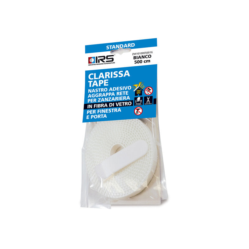 nastro adesivo doppio, aggrappante per rete zanzariera in fibra di vetro e PVC o alluminio . La parte adesiva si fissa alla struttura mentre il velcro superiore ferma e rifinisce il bordo della zanzariera. Rotolo da 5 m. Colore bianco.