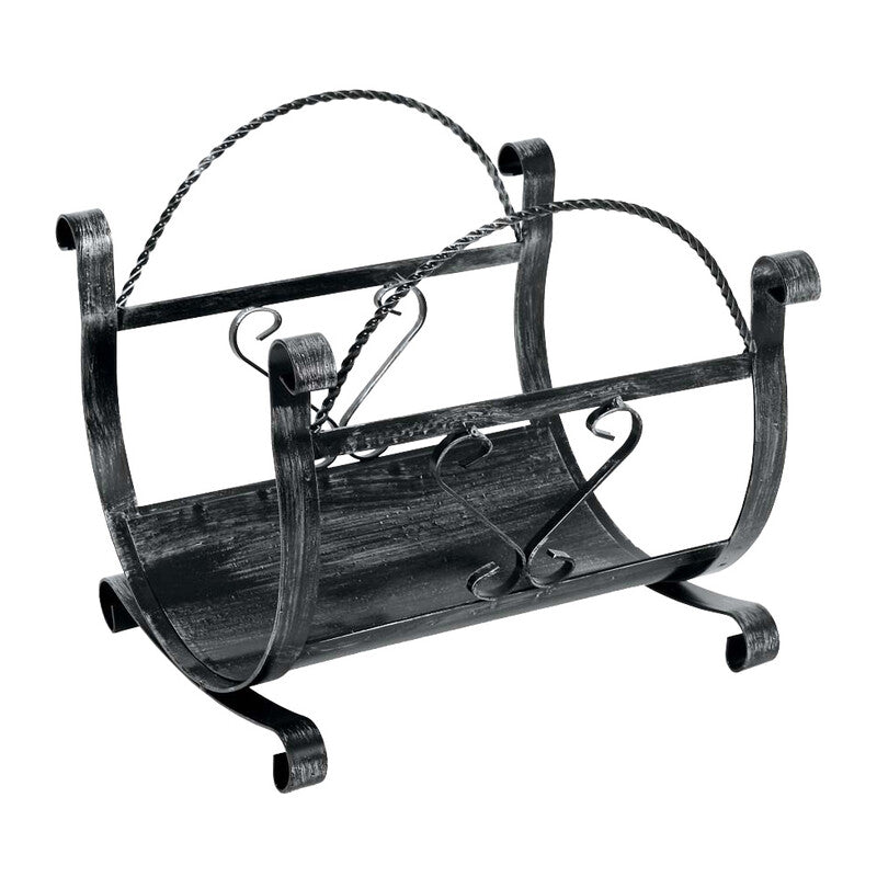 Contenitore in metallo supporto a forma di botte. Dimensioni 43 x 41,5 x h 42,5 cm. Colore nero.