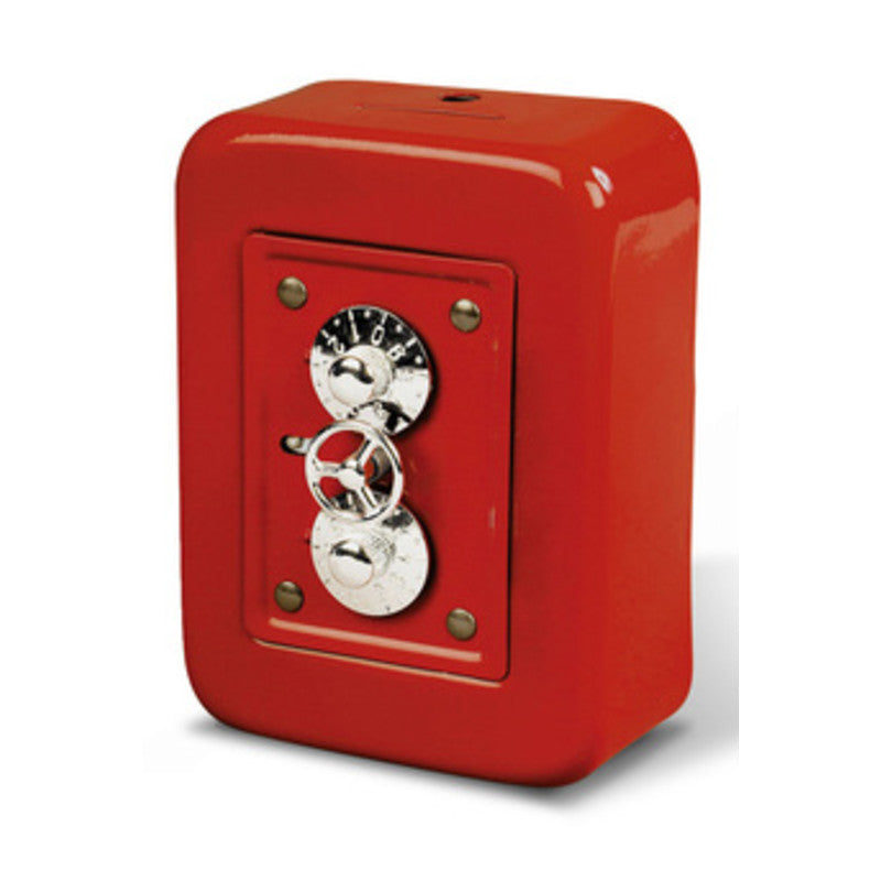Mod. ZECCHINO in lamiera pesante. Chiusura a combinazione con 2 rotelline. Dimensioni cm 11x6x15h