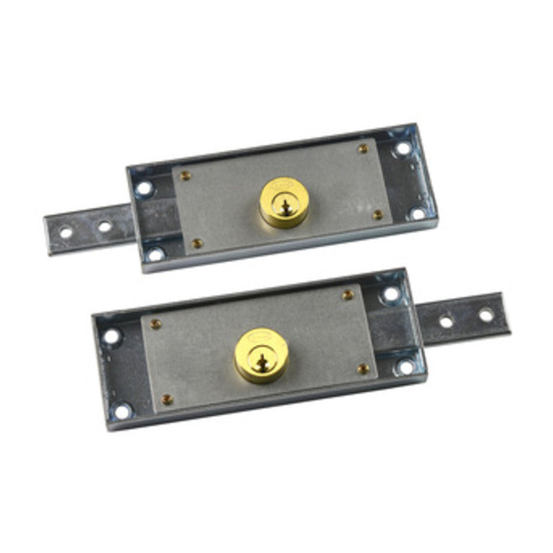 Art. C 1625 accoppiate laterali, con cifratura unica. Catenaccio ad 1 mandata. Cilindro intercambiabile in ottone. Con 3 chiavi cromate. Scatola mm 155x56