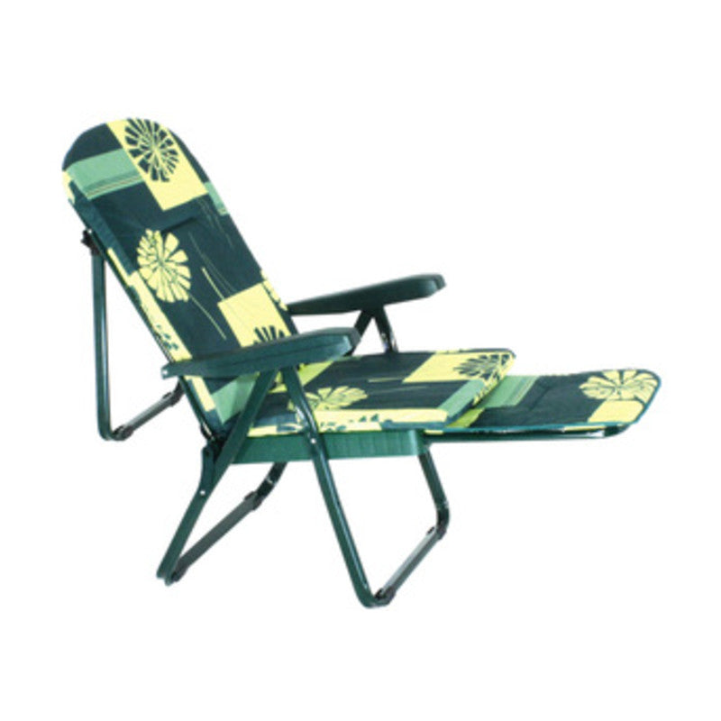 Sdraio con prolunga estensibile. Telaio Gambe in tubo ottogonale 35x20 mm, il resto del tealio in tubo tondo diametro 20 mm verniciato. Bracciolo in PP a 7 posizioni. Piedino antiribaltamento. Materassino 3,5 cm in plycotone, retro 100 polipropilene