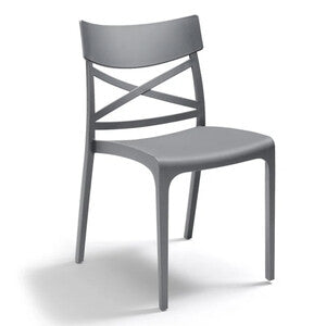 Sedia Croix in polipropilene, impilabile, schienale a croce. Adatta sia per uso interno che esterno. Made in Italy. Dimensioni cm 46x54x80h Colore graphite