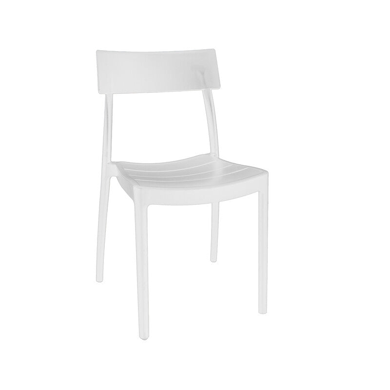In polipropilene con seduta effetto doghe. Resistente e versatile. Ideale per ogni ambiente, sia interno che esterno. Impilabile. Dimensioni compatte 41x41xh80 cm