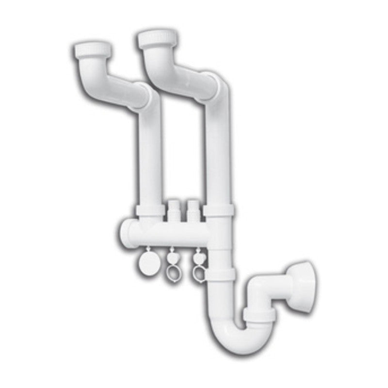 Mod. INVISIBILE in polipropilene, a 2 vie, senza pilette. Con attacco lavatrice, lavastoviglie o condizionatori. Tubo scarico 40 mm (1 ) Confezione in scatola