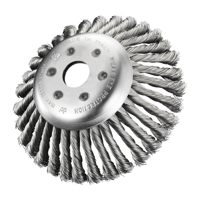 Spazzola conica per decespugliatore, fili in acciaio, diametro mm. 170, foro 25,4 mm., incluso set adattatori in acciaio fino a foro 20mm-3/4