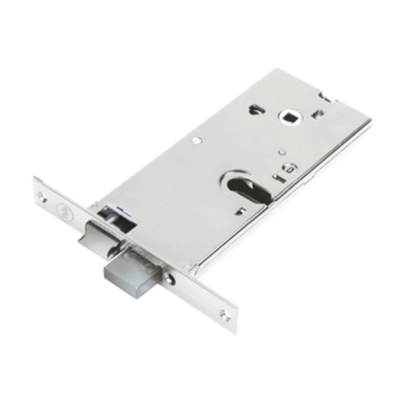 Art. 865 catenaccio a 2 mandate e scrocco reversibile. Cilindro ovale. Quadro maniglia 8 mm Frontale 22 mm Entrata 58 mm