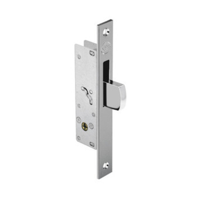 Art. Y5820 solo catenaccio basculante. Cilindro a spillo. Completa di contropiastra, 2 copritoppa e 3 chiavi a spillo. Frontale in acciaio nichelato 20 mm Entrata 20 mm