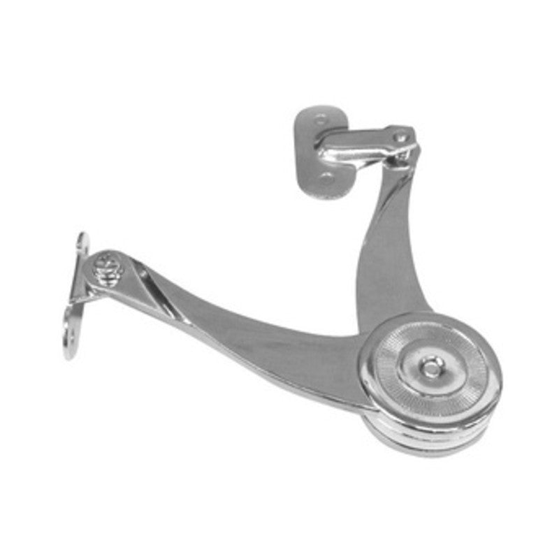 in zama cromata. Completo di viti e supporti per ante in legno. Lunghezza braccio 105 mm