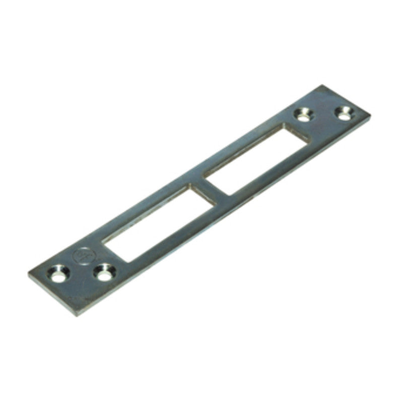 Art. 0053 per montante serrature profilo europeo 12-14x65 mm per serrature a gancio e scrocco 34x14 mm in acciaio zincato. Dimensioni 180 x 3 x h 25 mm.