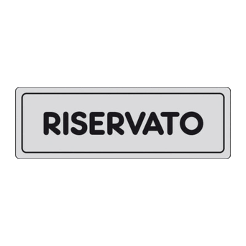 cartello Riservato. Adesivo bianco. Dimensioni 150 x 50 mm.