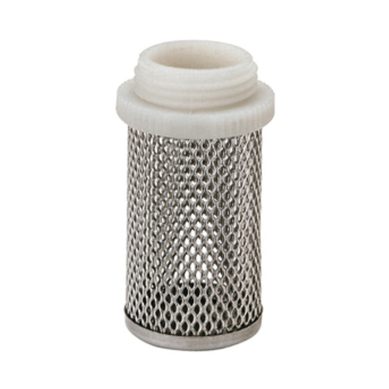 Art. 102 rete in acciaio inox Aisi 304. Grado di filtrazione 1200 m. Parte filettata in polimero. Dimensioni  50,5x75 mm. Diametro 1.