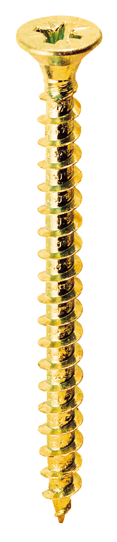 Mod. 05052 in acciaio ottonato per pannelli di legno truciolare conglomerato. Taglio a croce Q.TA Testa svasata piana. Diametro 3 mm Lunghezza 12 mm
