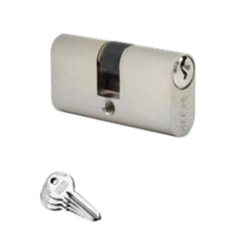 profilo ovale in ottone. 3 chiavi. Vite di fissaggio. Dimensioni 13 x 54 x 28 mm. Finitura nichelato.