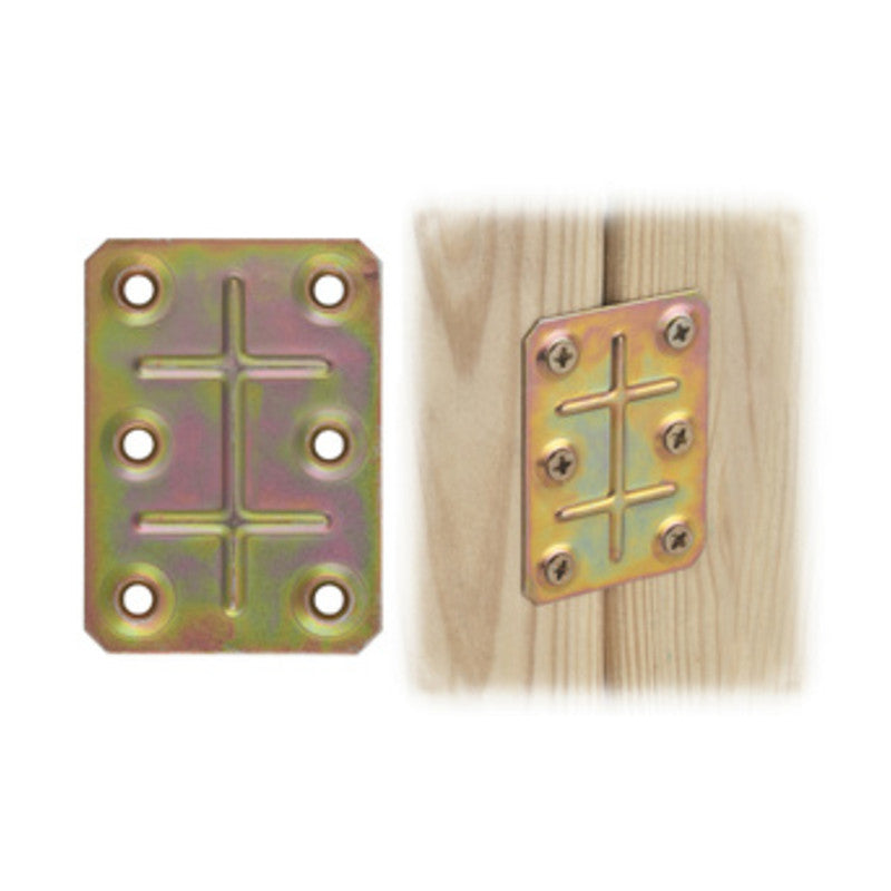 piastrina rettangolare leggera in acciaio tropicalizzato per pannelli e grigliati in legno. Spessore 1 mm. Peso 15 g.