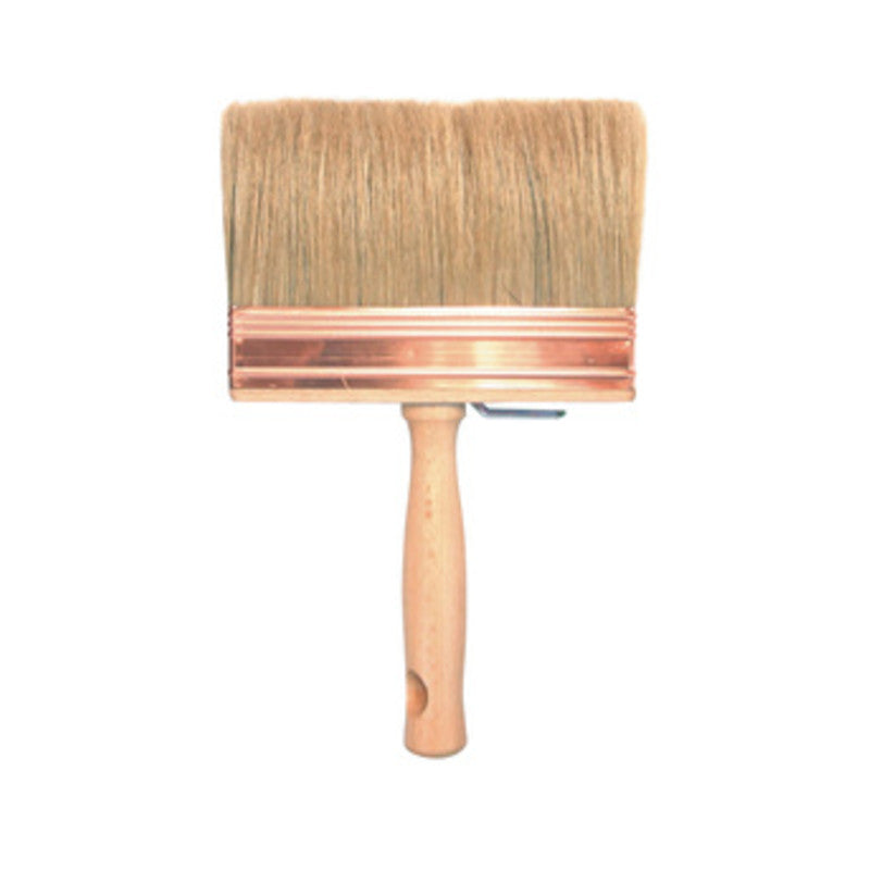 in setola bionda, base e manico in legno, ghiera ramata. Dimensioni 50x150 mm.