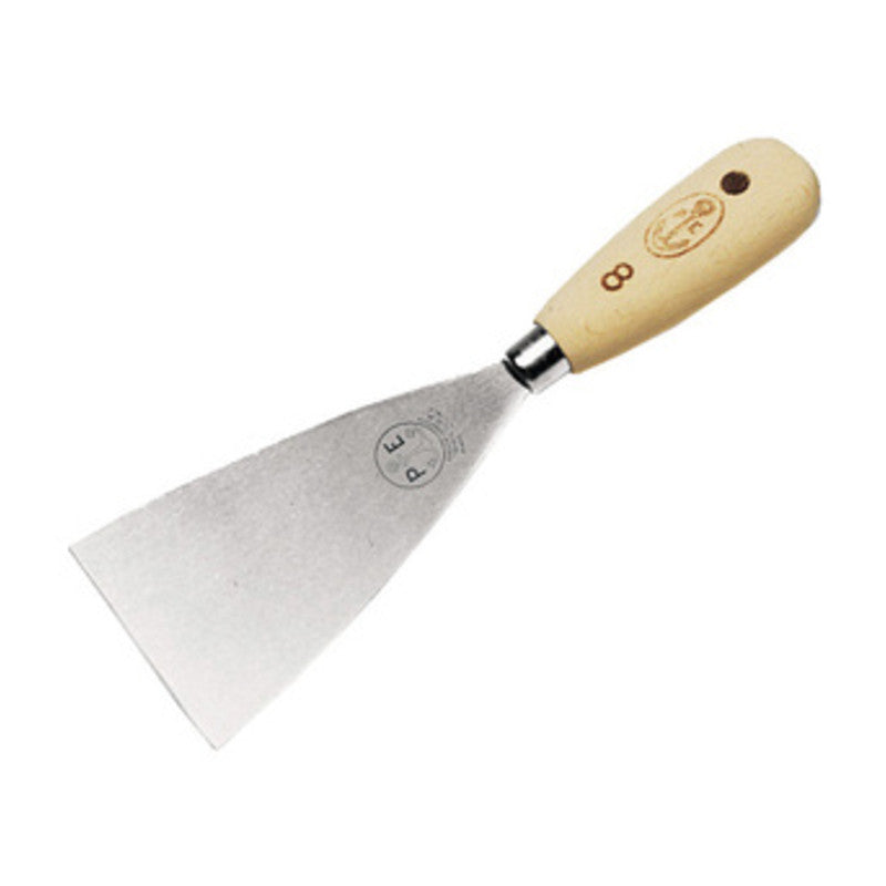 Art. 501 per pittori e stuccatori. Lama in acciaio, manico in legno. Larghezza 30 mm