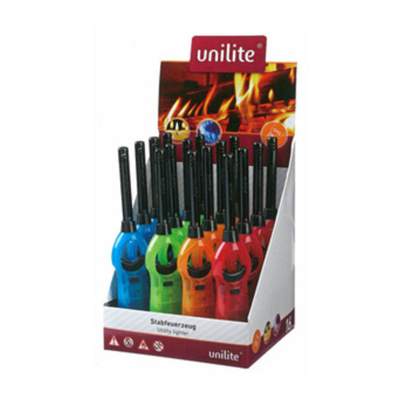 a fiamma ricaricabile con chiusura di sicurezza. Il suo tubo rigido permette di tenere le mani lontano dalla fonte di calore per una maggiore sicurezza. Blocco fiamma. Fiamma regolabile. Colori assortiti. Dimensioni 19,8 cm