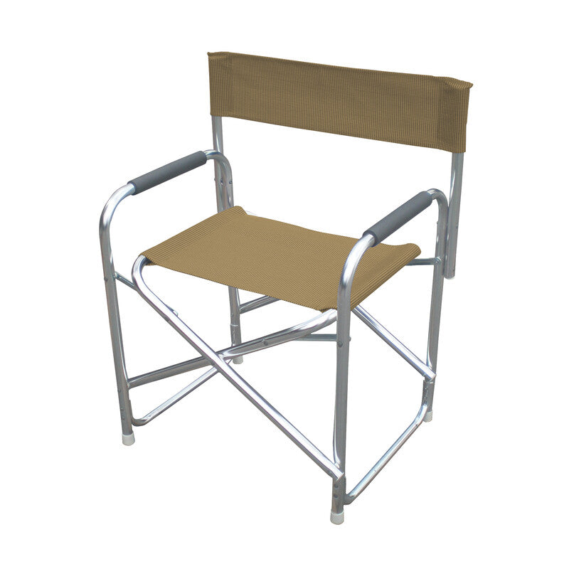 struttura in tubolare di alluminio satinato d 25 mm. Braccioli rivestiti in morbida gomma. Schienale e seduta in texilene.