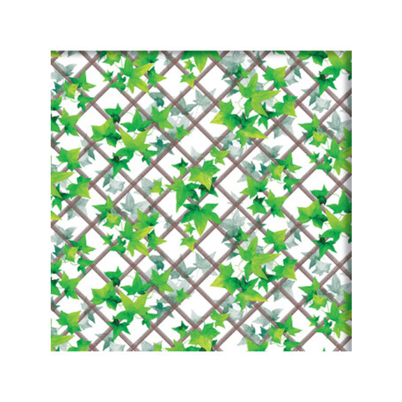 PVC stampato accoppiato a tessuto di polipropilene. Altezza 140 cm. Fantasia edera verde. Rotolo da 20 m.