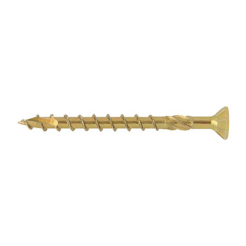 in acciaio zincato giallo Fresatura sotto testa e in punta. Filetto mordente. Utilizzo senza preforo. Taglio TX. Testa svasata piana. Diametro 4 mm Lunghezza 50 mm