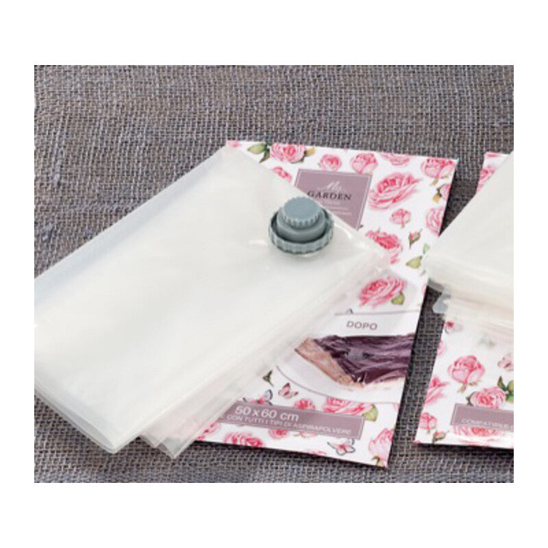 Custodia salvaspazio veloce, pratica, il metodo pi comodo per riporre capi nei vostri armadi salvaguardando lo spazio occupato e riducendolo al minimo riducendo al 75 il volume. Funziona con laspirapolvere e ha una cerniera a doppia saldatura per una maggior tenuta del vuoto, adatta per riporre sottovuoto biancheria e indumenti. Dimensioni 50 x 60 cm